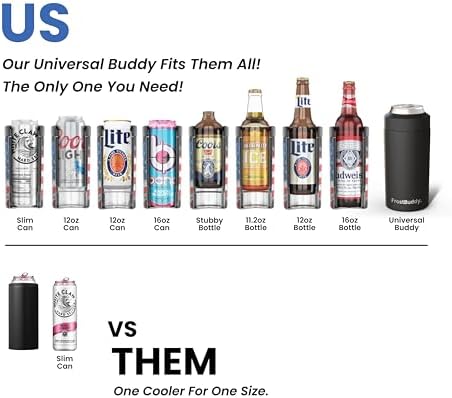 FIVE SIZES IN ONE: That is the ONLY Universal can insulated cooler for you! The right can keeper in your cans, slim cans, and bottles. Lastly! No extra switching coolers! Drink no matter dimension of drink you need! This will cooler suits your favourite 12oz cans and slim cans, 16oz cans and bottles multi function.