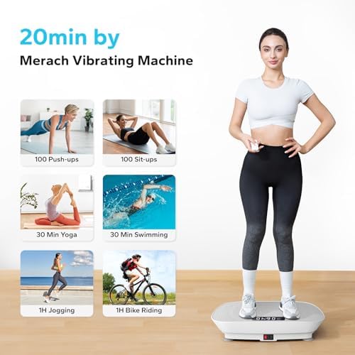 MERACH Vibration Plate Exercise Machine,Whole Body Workout Power Vibrate Fitness Platform Vibration Plate for Lymphatic Drainage, Silent Motor Speed Control , Weight Loss & Shaping, Burn Energy