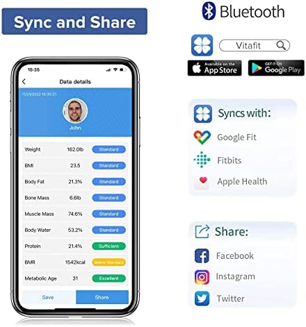 SYNC AND SHARE – The digital scale App is designed for friendly-user. Sync your knowledge with well-liked health apps Apple Well being, Google Match, and Fitbit to conveniently view your health graphs. Moreover, simply share your progress on main social media platform.