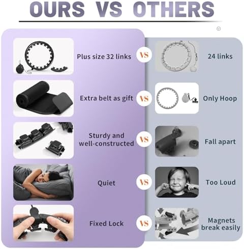 Plus Size Fits All Physique: The health hoop is adjustable with plus dimension 32 hyperlinks, can accommodate a waist as much as 165 cm/65 inches. Add or take away the items based on your dimension